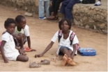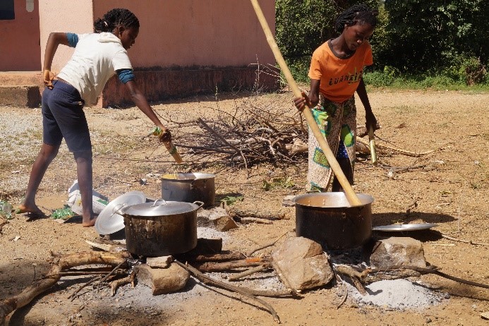 schlafen am Boden. Die Küche ist unter freiem Himmel, was in der