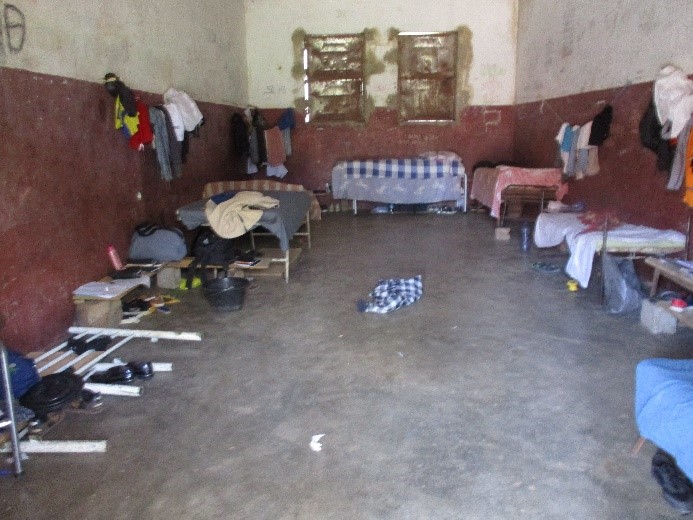 Türen und Fenster, Betten im Schlafsaal fehlen. Die Kaben